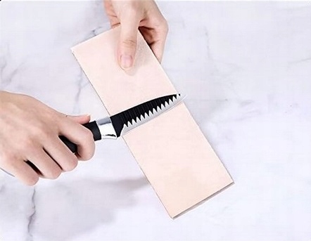 5. После получения ожидаемой остроты лезвия с помощью полоски удалите с ножа любые частицы материала.
