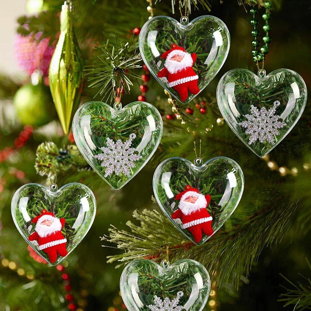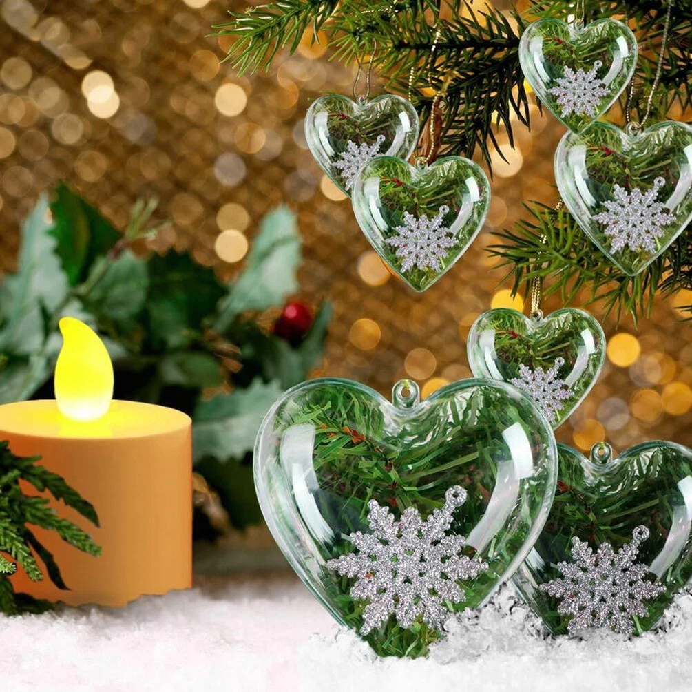 Придайте неповторимый шарм своим рождественским украшениям с помощью набора красивых прозрачных шаров в форме сердечек. Это идеальная основа для создания собственных, персонализированных украшений — вы можете наполнить их чем угодно: пряники, конфетти, искусственный снег, фотографии, небольшие подарки или надписи. Фенечки открываются посередине, что делает их украшение быстрым, удобным и дает безграничные возможности.