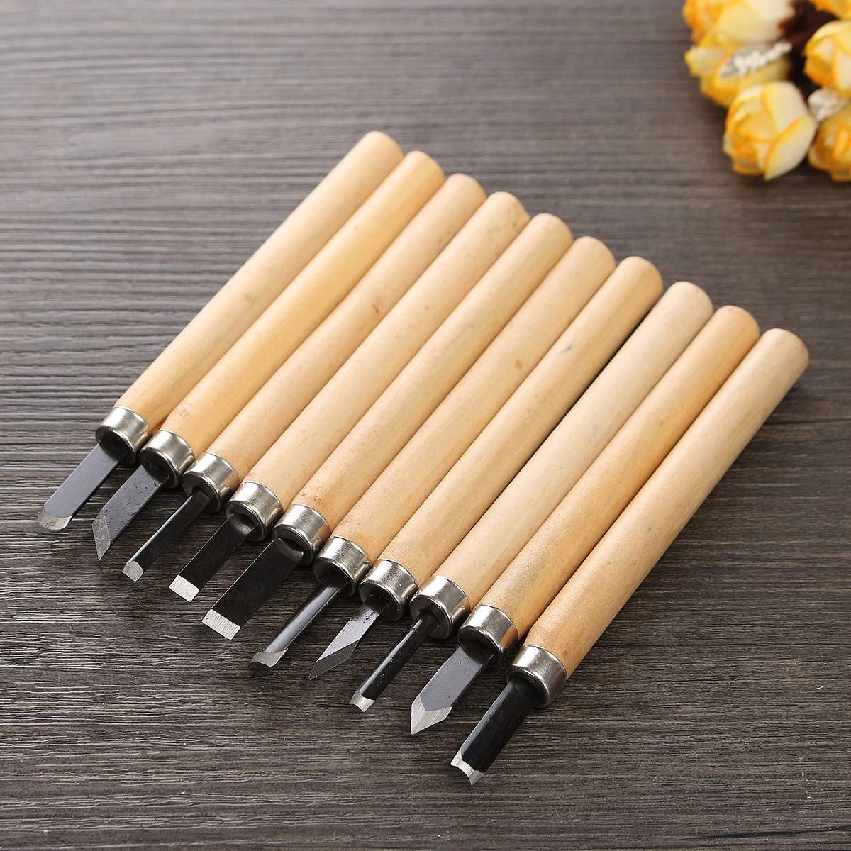 Имеют эргономичные ручки из лакированного дерева, которые хорошо лежат в руке. В наборе есть размеры, используемые для самых простых, но и сложных работ.