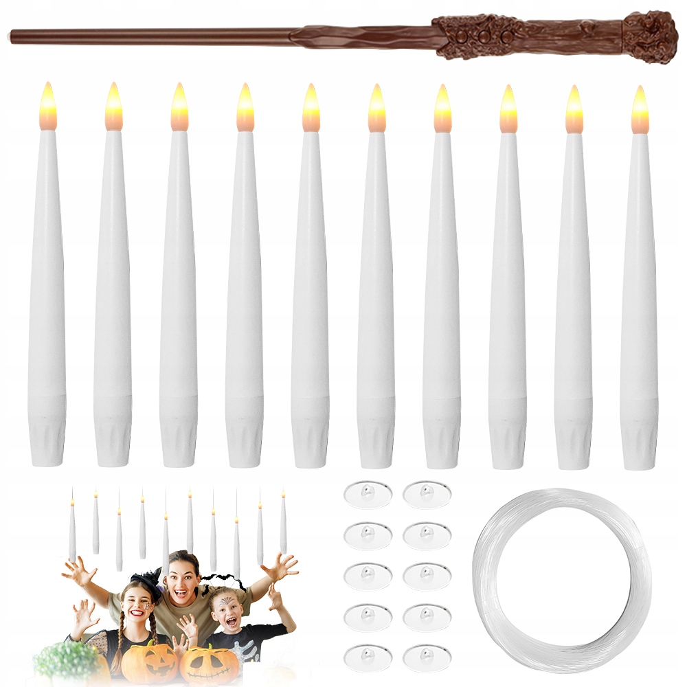 🪄Плавающая свеча длиной 15 см, пульт в форме палочки, крючок, тонкая наклейка, веревка для подвешивания (около 50 метров) и инструкция (английская версия не гарантируется). Вы можете сделать их сами и комбинировать по своему желанию. Плавающие свечи добавят волшебства вашему дому, приглашая отпраздновать Хэллоуин в волшебный мир!