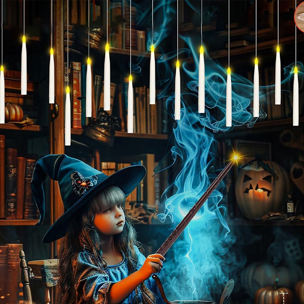 🪄Эти беспламенные светодиодные свечи имеют 50-футовую (почти невидимую) линию. Создайте свое собственное волшебное пространство по своему желанию. Вы можете повесить эти свечи на потолок или использовать крючки, чтобы повесить их на окно, стену или рождественскую елку. Они идеально подходят для украшения Хэллоуина, а также для украшения камина, обеденного стола, дома и сада. Забавный пульт дистанционного управления в форме палочки в сочетании с плавающими свечами создает волшебную атмосферу.