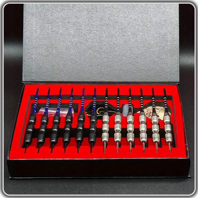 Набор из 12 дротиков – стальные наконечники + алюминиевый стержень + футляр – набор аксессуаров для дротиков