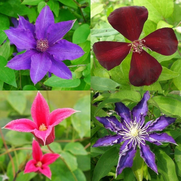 В наборе 3 разных, случайно выбранных сорта клематиса 2L, которые не имеют этикеток (маркировать отдельные растения невозможно).