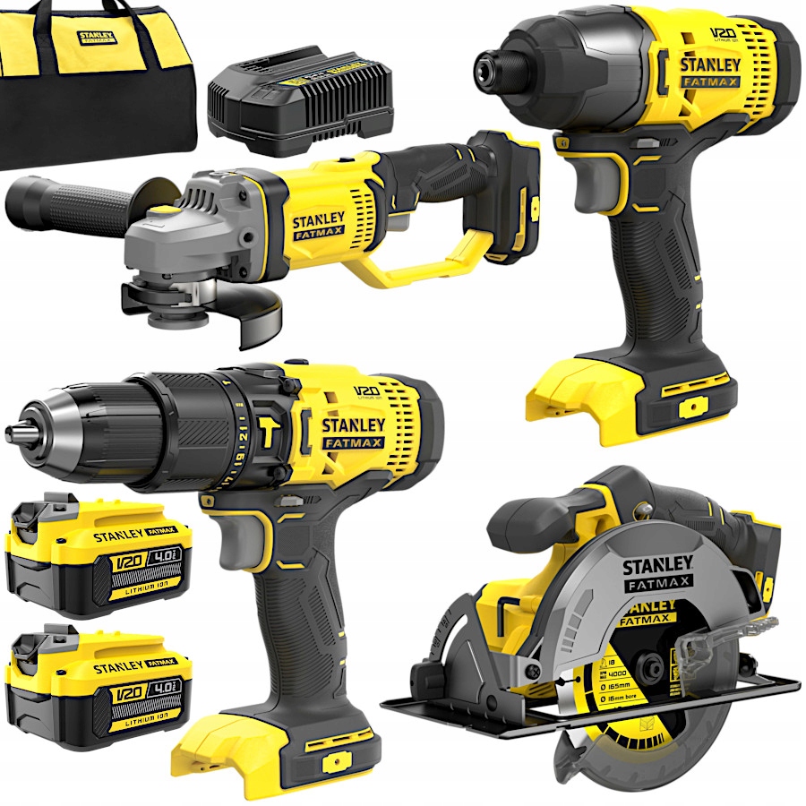 Набор из 4 электроинструментов Fatmax V20 + зарядное устройство + 2 литий-ионных аккумулятора емкостью 4 Ач