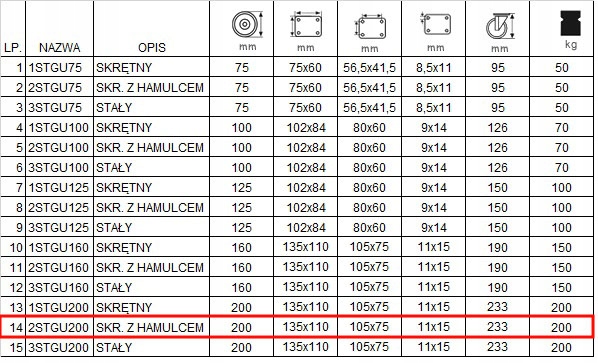 - корпус стальные листы с высокой прочностью сделаны. Плитка имеет размеры 135x110 мм. Колеса имеют диаметр 200 мм, а центры крепления имеют размер 105 х 75 и овальные отверстия для крепления с размерами 11 х 15 мм. Общая высота составляет 233 мм.