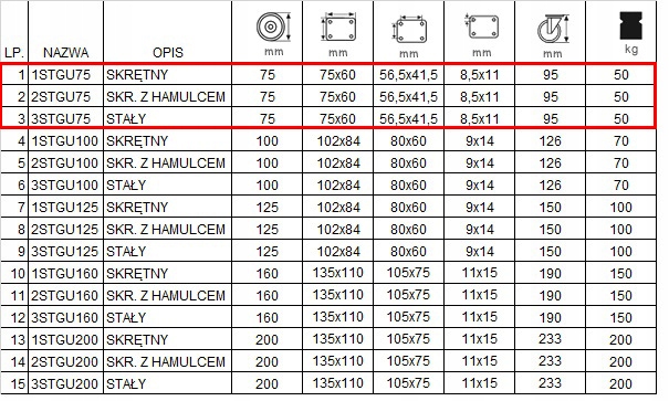 Набор состоит из четырех колес, оснащенных застежкой для тарелки. Комплект включает в себя два постоянных набора с кодом 3stgu75 (пункт 3 в таблице), одно круглое колесо с кодом с кодом 2stgu75 (пункт 2 в таблице) и одним колесным колесом с кодом 1stGU75 (пункт 1 в таблице). Резина, корпус покрыт оцинкованным.