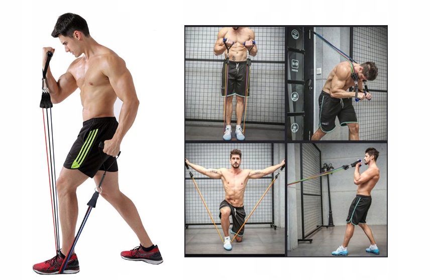 В комплект также входят ручки, покрытые высококачественной неопреновой пеной, и ленты на щиколотках, позволяющие тренировать нижние части мышц.