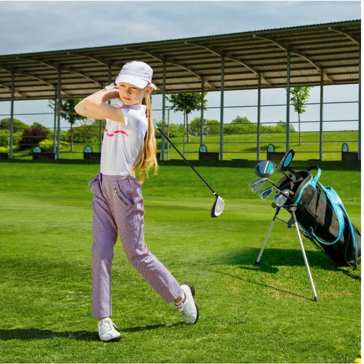 Полный набор палочек для гольфа для детей : Этот набор поляков для гольфа был специально разработан для детей в возрасте от 11 до 13 лет и содержит все необходимые палочки, обеспечивающие отличную и захватывающую игру в гольф. Набор включает в себя сумку с водолазкой с дождевой крышкой, водитель № 1, гибрид № 5 с крышками, железо № 7, № 9, №. Водитель алюминия и гибридного сплава был разработан, чтобы помочь молодым игрокам в гольф оказать далекие, точные воздействия. Они идеально подходят для развития навыков на поле для гольфа.