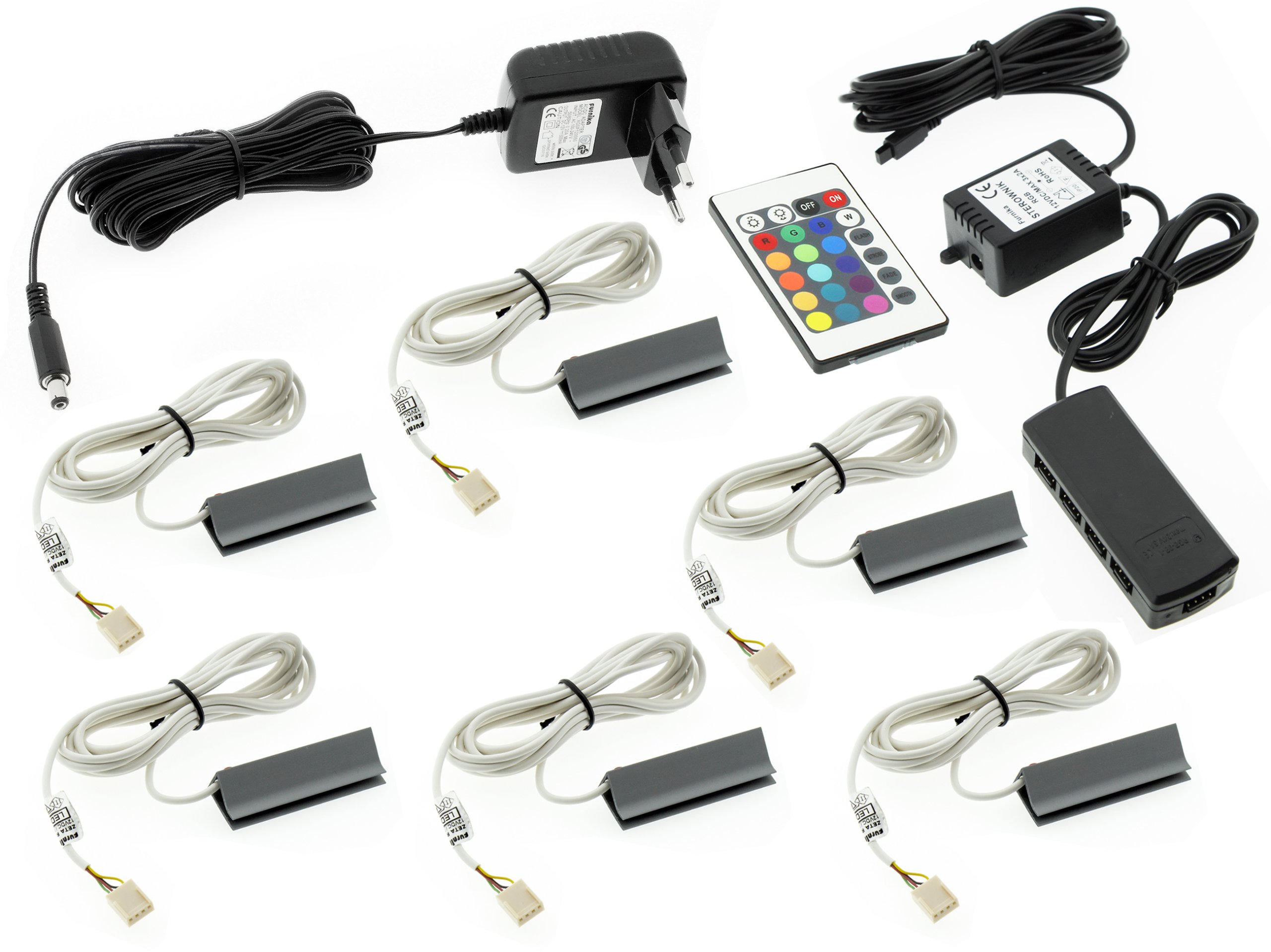 На этом аукционе вы приобретаете комплект, состоящий из 6 пластиковых зажимов (серого цвета) ZETA PVC RGB LED с ИК-контроллером RGB, пульта дистанционного управления и источника питания светодиода. На других аукционах можно купить комплекты от 1 до 6 роликов. Вы также можете собрать комплект самостоятельно, купив один зажим в любом количестве на другом аукционе и соответствующий блок питания с контроллером.