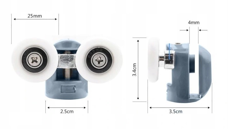 Набор из 8 роликов для душевой кабины ZE-01. Диаметр колеса в рулоне 25 мм. Подробные размеры на фотографиях.