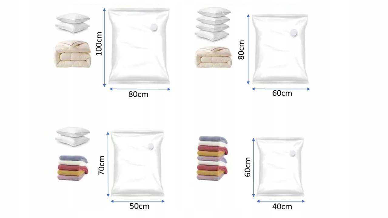 Полки в ваших шкафах трещат по швам? Хотите освободить дополнительное пространство в доме? Вакуумные пакеты способны уменьшить объём одежды или постельного белья до 80%! Вакуумные пакеты для одежды, которые вы найдете на нашем аукционе, изготовлены из нейлона и полиэтилена высочайшего качества. Они безопасны, просты в использовании и пригодны для многократного использования!