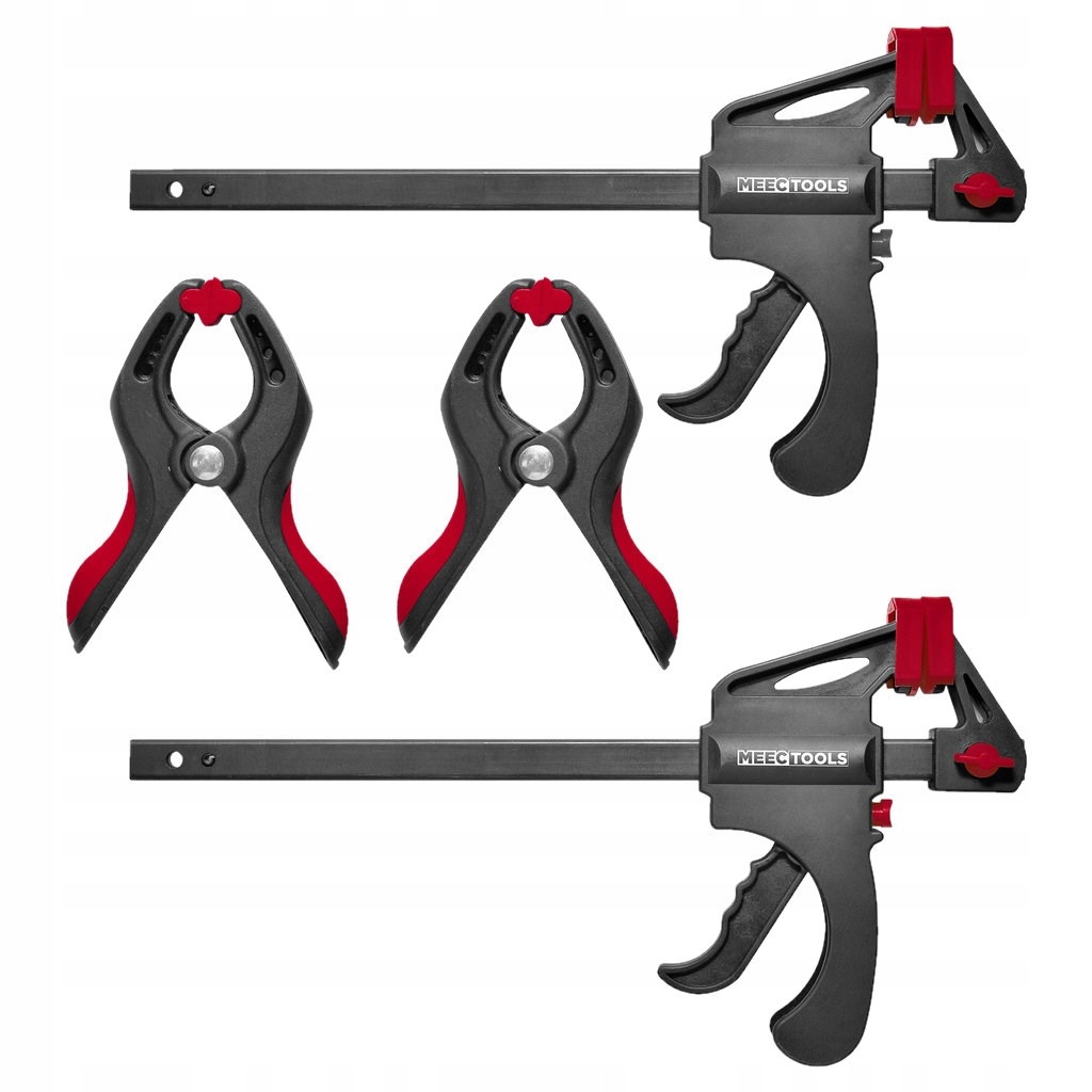 Пистолетные зажимы MeecTOOLS и клеевые зажимы с широким раскрытием.