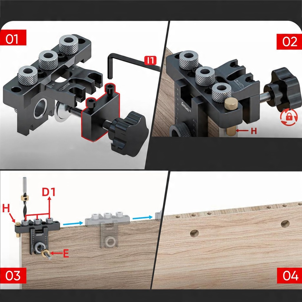 - Оснащен сверлами диаметром 8 мм, 10 мм и 15 мм для удовлетворения различных требований к сверлению и оснащен регулируемым калибром сверла для точного позиционирования.
