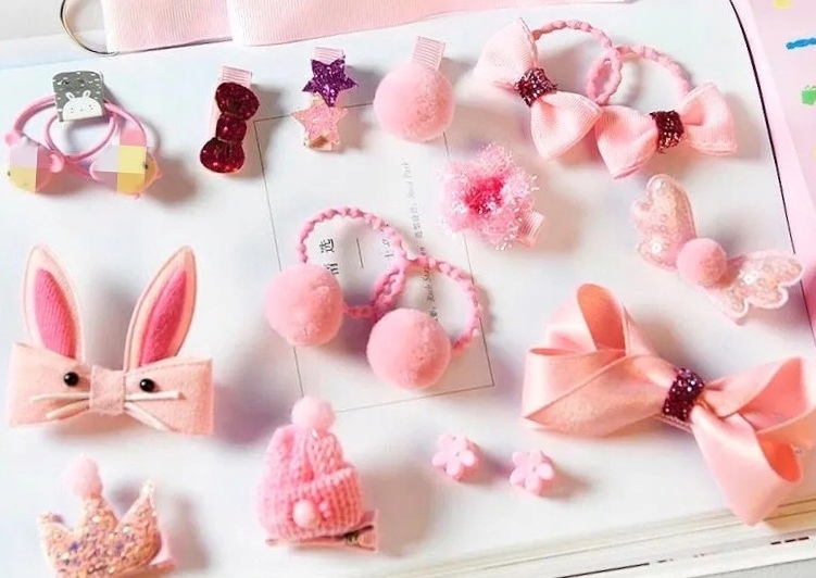 НАБІР ЗАЖИМОК ТА ГУМОВИХ РЕБЕШОК 18 ШТ. БЕБІ-ТРОЯНДИ