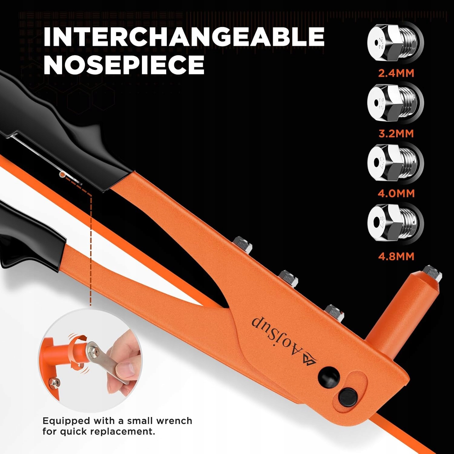 Ручной заклепочный пистолет AojSup поставляется с ящиком для хранения и 100 заклепками (25 x 2,4 мм, 25 x 3,2 мм, 25 x 4 мм, 25 x 4,8 мм), 4 сменными головками (2,4 мм, 3,2 мм, 4 мм). , 4,8 мм), 4 сверла из быстрорежущей стали разных размеров и переносной гаечный ключ, что делает работу более удобной и эффективной, а портативный ящик для хранения удобен для хранения.