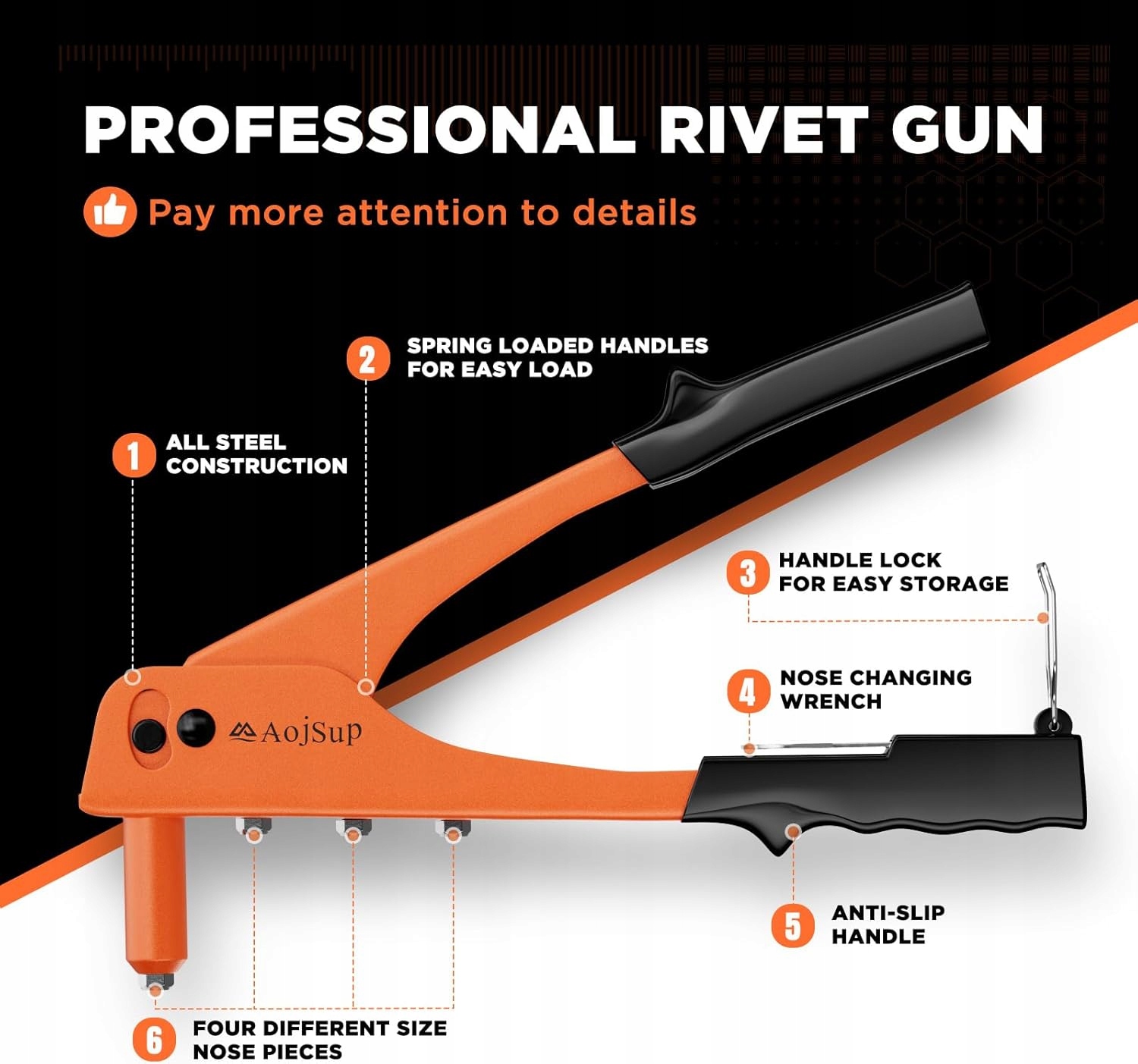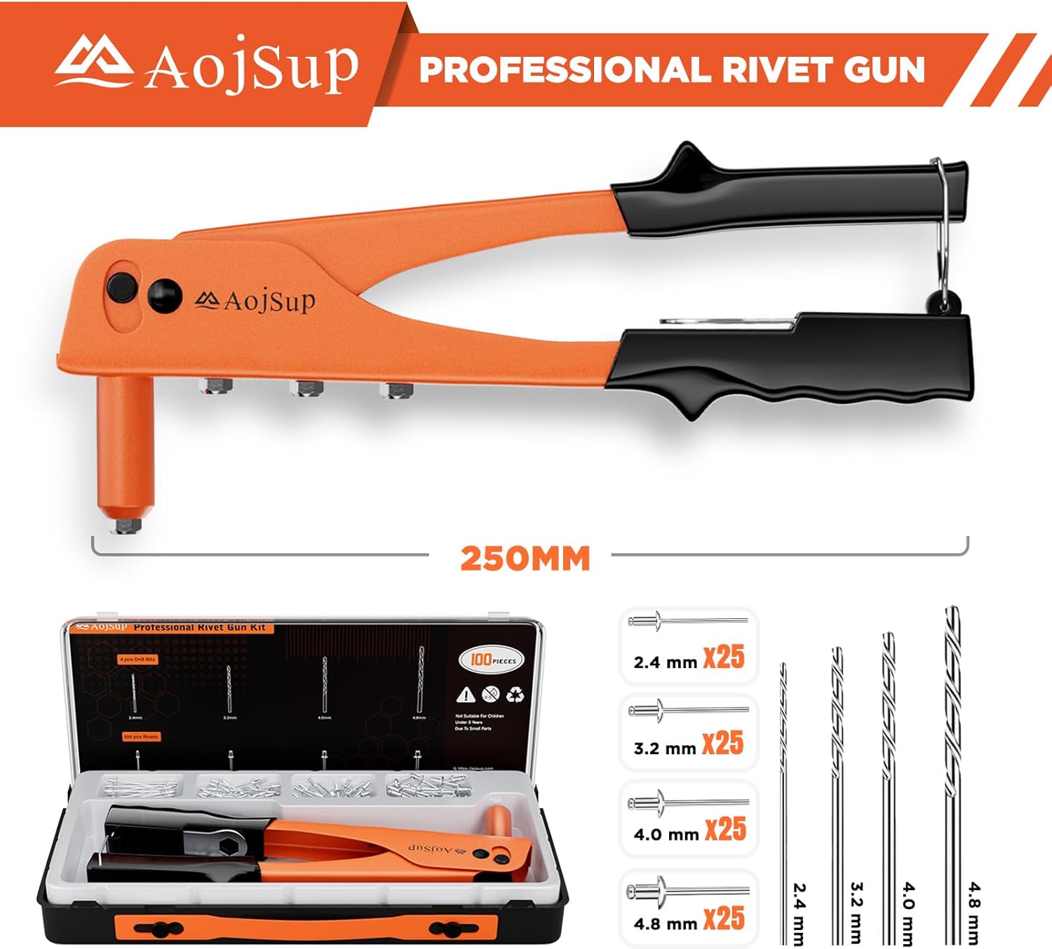 Набор пистолетов для заклепок AojSup, пистолет для заклепок, 100 металлических заклепок и 4 сверла из быстрорежущей стали, ручной заклепочник с коробкой для хранения, профессиональный инструмент для заклепок для автомобильных инструментов, мебели, железных дорог, лифтов