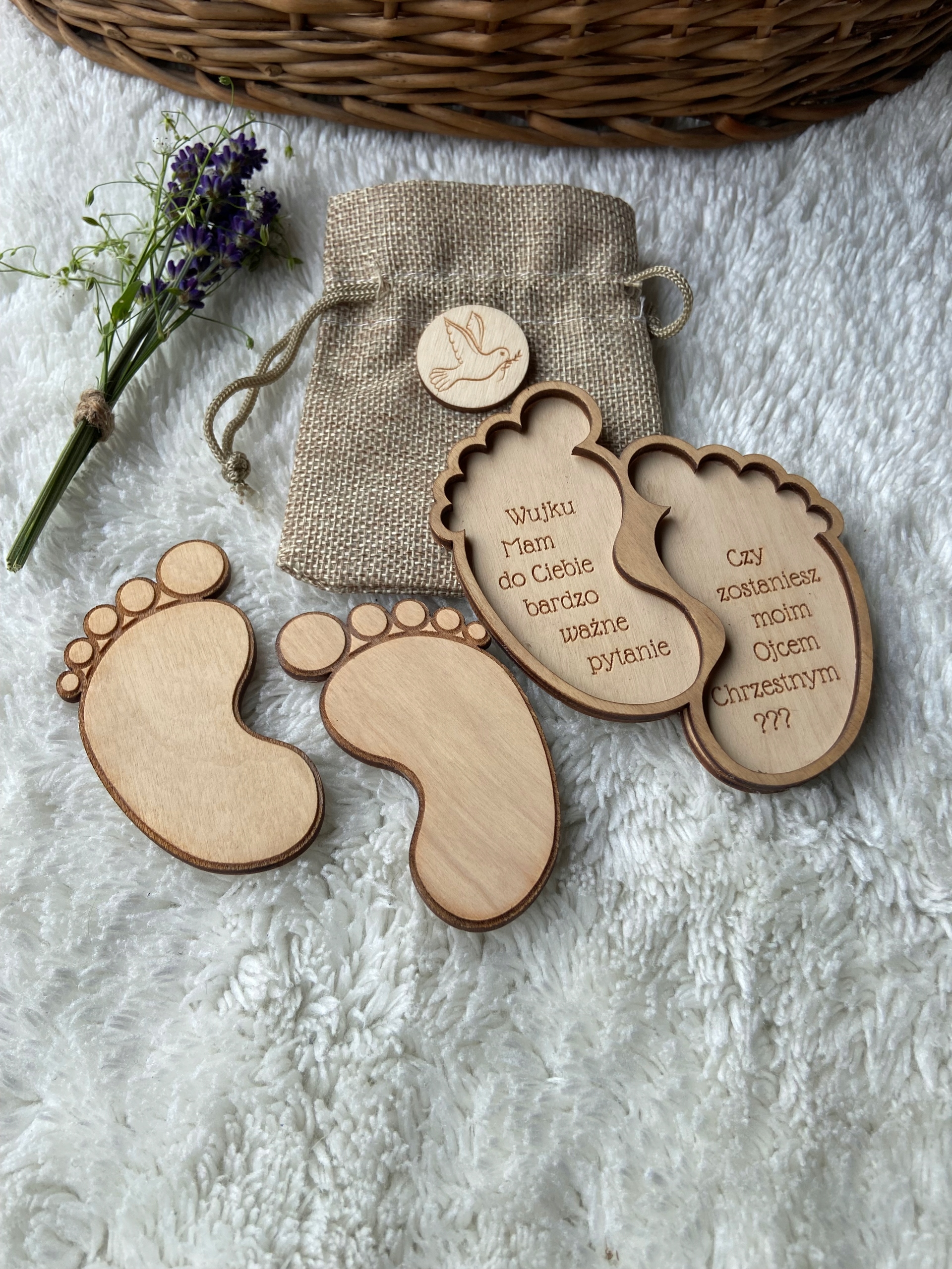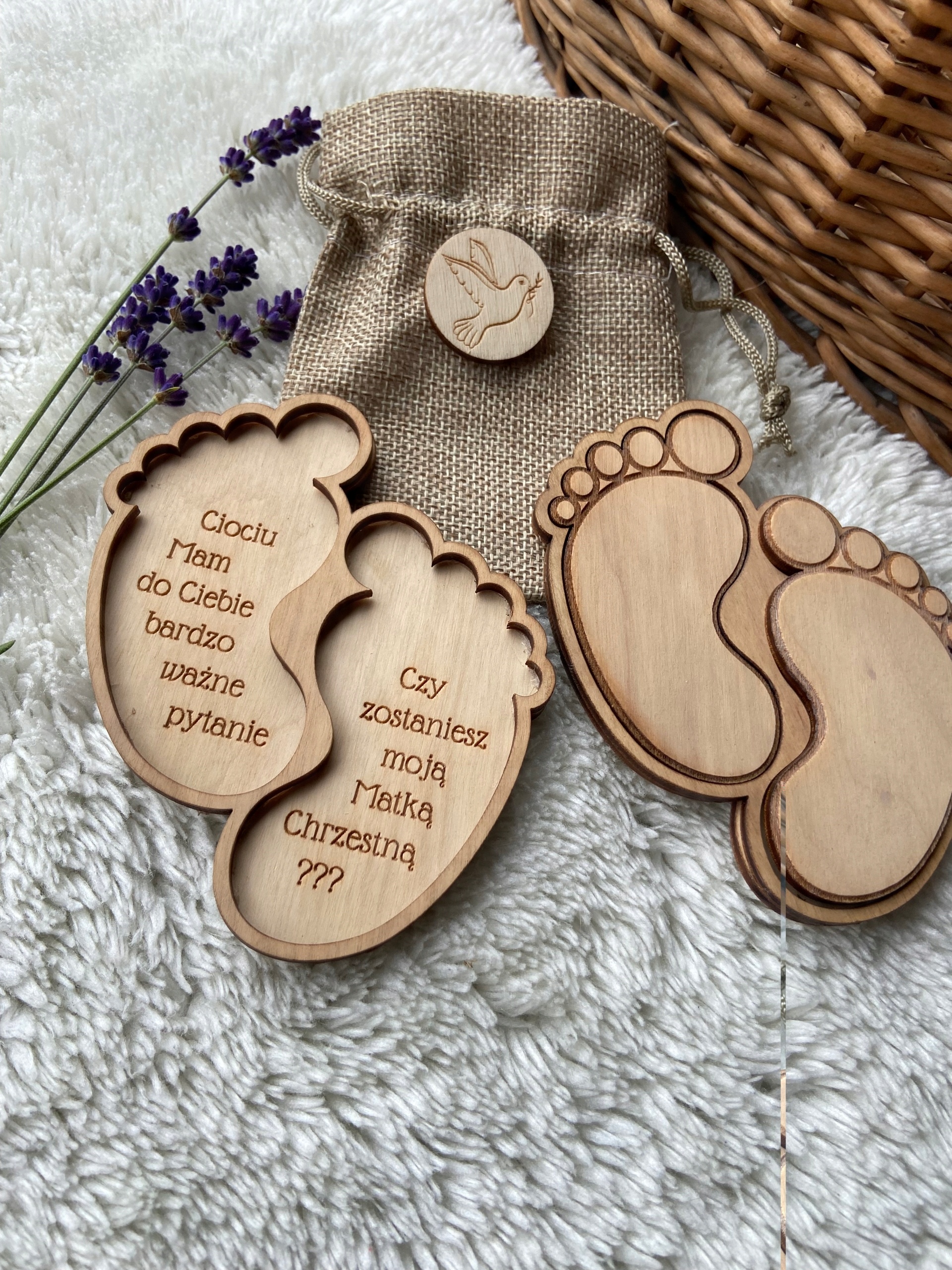 ❤️Спереди на пластине выгравированы ступни, после их снятия появляется выгравированная надпись - надпись "Тётя, у меня к тебе очень важный вопрос"," Ты будешь моей крестной???"