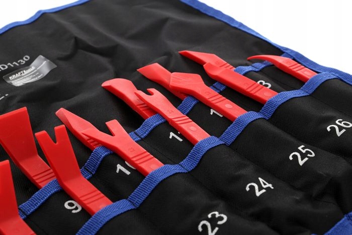 Большой набор позволит подобрать подходящий съемник, исключив риск сломать фиксатор , царапая или повреждая обивку каким-либо иным образом.
