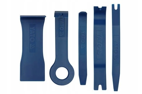 Специализированные съемники для снятия обивки и молдингов автомобиля. В наборе пять элементов, позволяющих быстро снять обивку с любого салона автомобиля. Детали набора изготовлены из закаленного нейлона. Они имеют специальные профили, позволяющие использовать рычаги при демонтаже штифтов обивки. Большим преимуществом этого набора является то, что он не оставляет царапин на обивке и окрашенных элементах. Это оказывает большое влияние на сохранение должного эстетического вида автомобиля.
