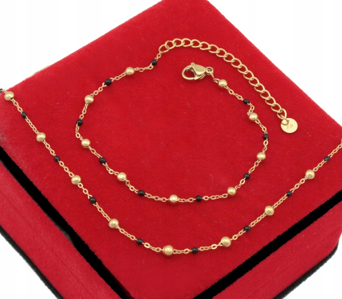Комплект украшений из хирургической стали, цепочка и браслет с золотыми шариками и черными бусинами, хирургическая сталь 316 L