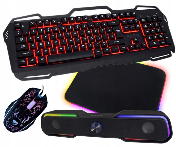 Клавиатура игрового набора со светодиодной подсветкой RED Blow COLD STEEL + мышь + коврик + динамик звуковой панели