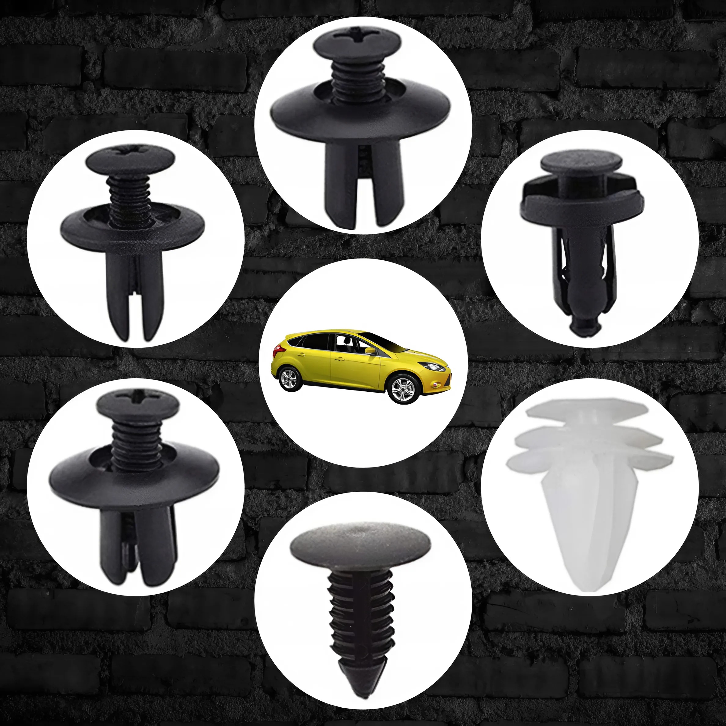 Практичный и универсальный набор для ремонта и установки элементов отделки в автомобиле - эти универсальные автомобильные зажимы, зажимы и штыри представляют собой незаменимый набор для крепления обивки, чехлов, колесных арок, бамперов и других пластиковых элементов кузовные работы.