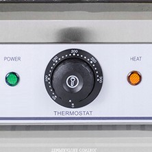 Чрезвычайно простое и интуитивное управление с помощью термостата с плавной температурой. контроль температуры до 300°C на двух нагревательных пластинах. Благодаря отличным чугунным нагревательным пластинам, которые долго сохраняют температуру, устройство является энергосберегающим.