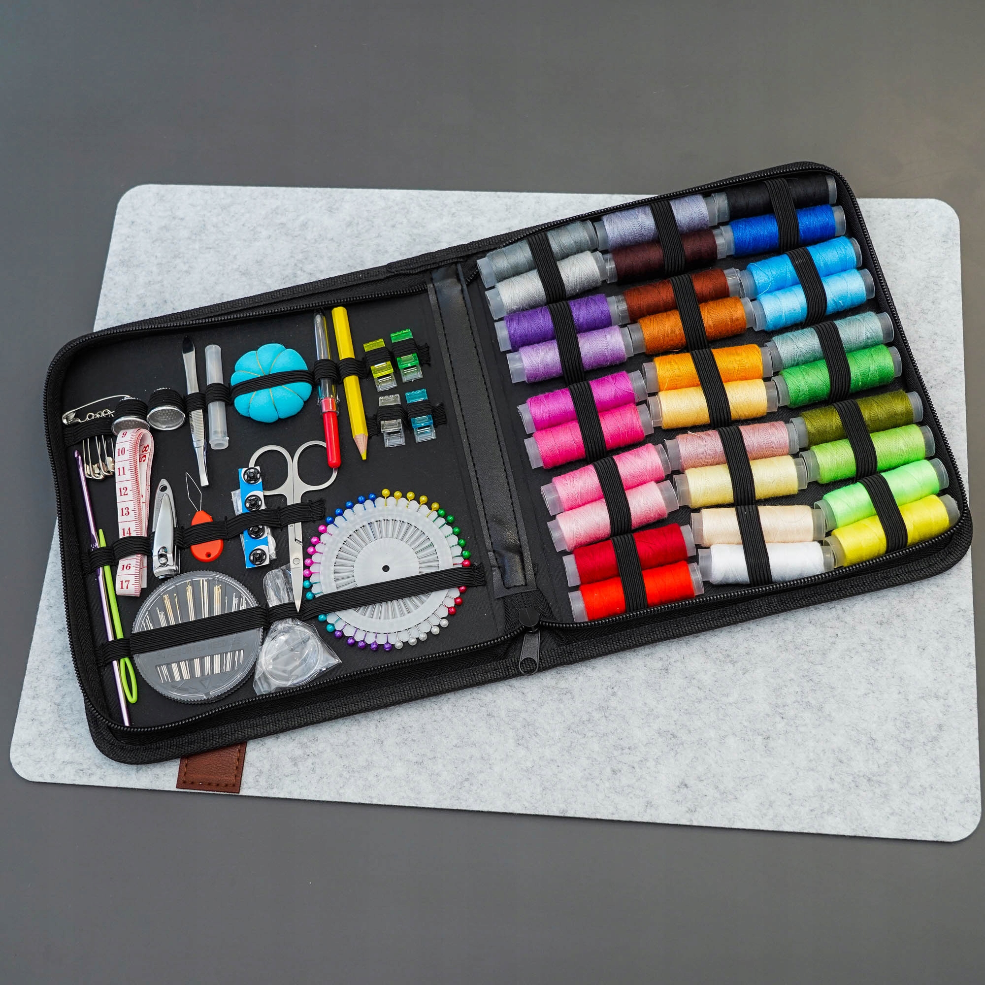 С нашим высококачественным швейным набором у вас будет все необходимое в одном месте. Наш набор для шитья включает в себя не только базовый инвентарь, такой как набор игл разных размеров или набор цветных ниток, но и практичные аксессуары, такие как увеличительное стекло или кнопки. Компактная и портативная сумка для швейных принадлежностей для безопасного и организованного хранения. Идеально подходит для шитья дома и в путешествии.