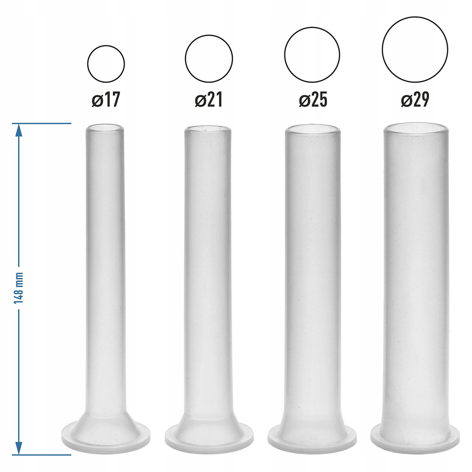 - 4 пластиковые воронки - наш продукт отличается не только продуманная конструкция, а также , целых 4 воронки диаметром: 17, 21, 25 и 29 мм.