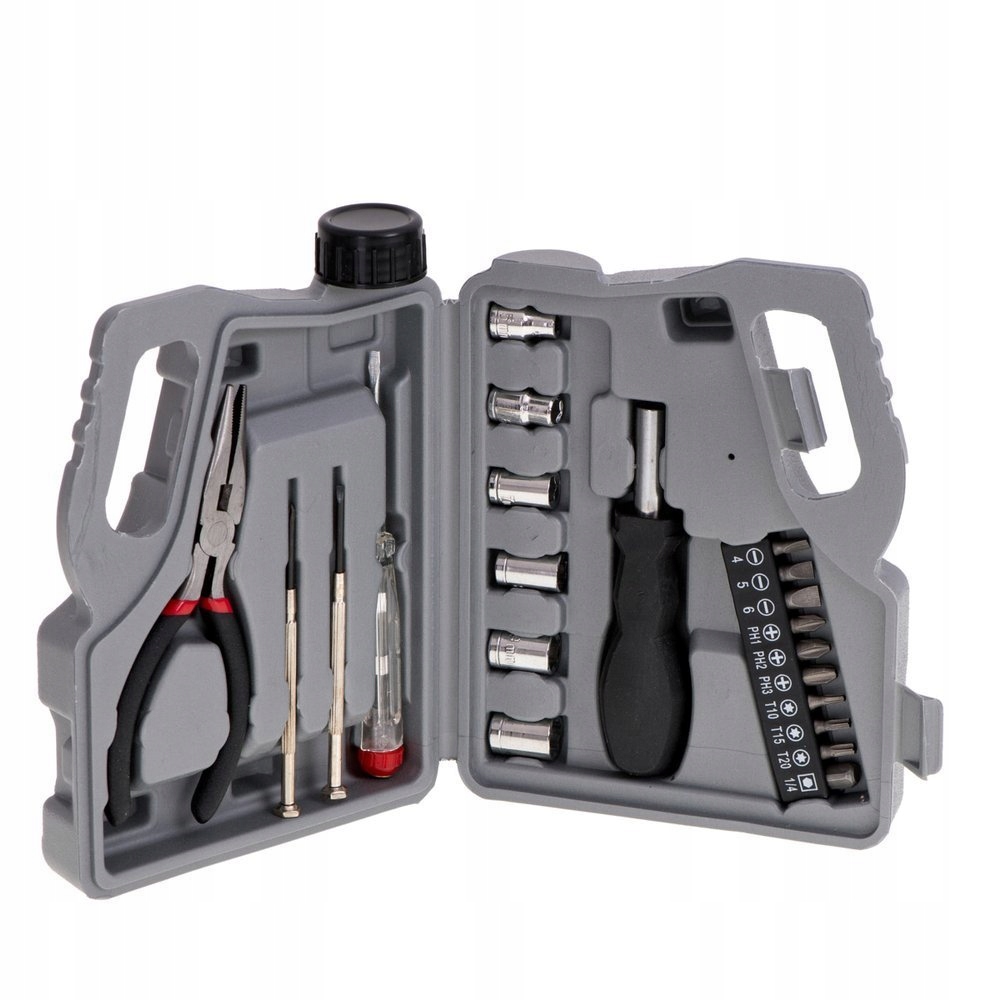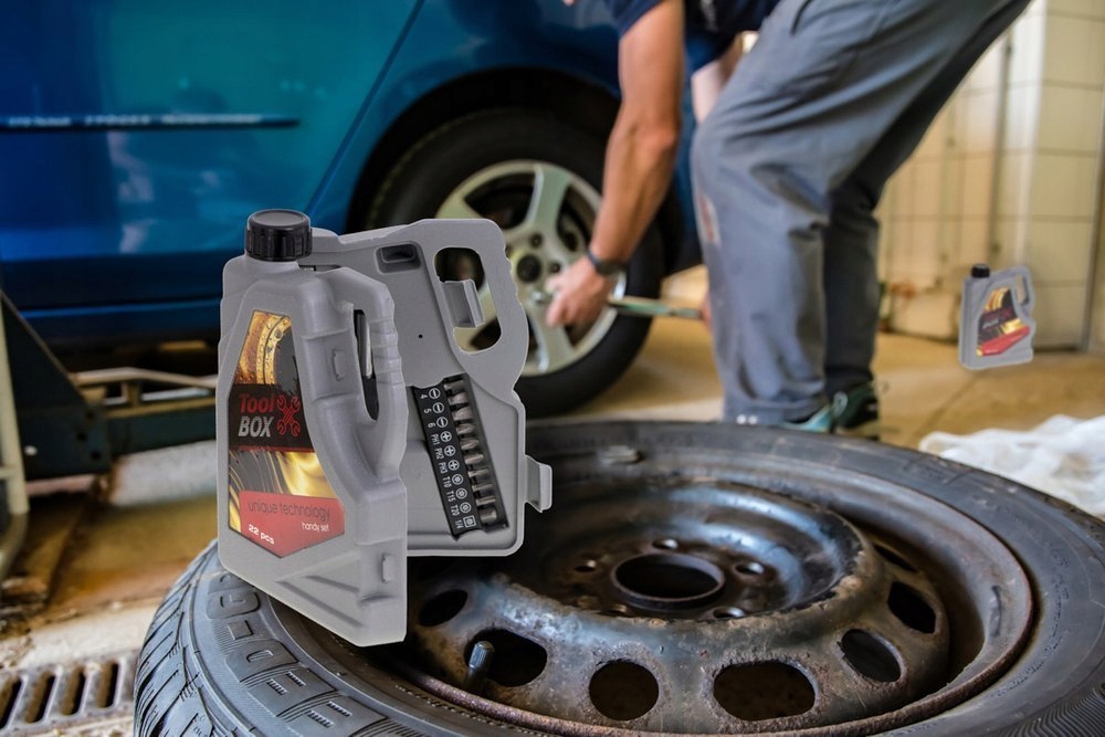 Практичный и удобный набор инструментов, упакованный в оригинальный кейс в форме канистры из-под масла :) А еще в этой классной упаковке очень много полезных инструментов, целых 22 штуки, которые пригодятся для любых целей, дня и во многих ситуациях.