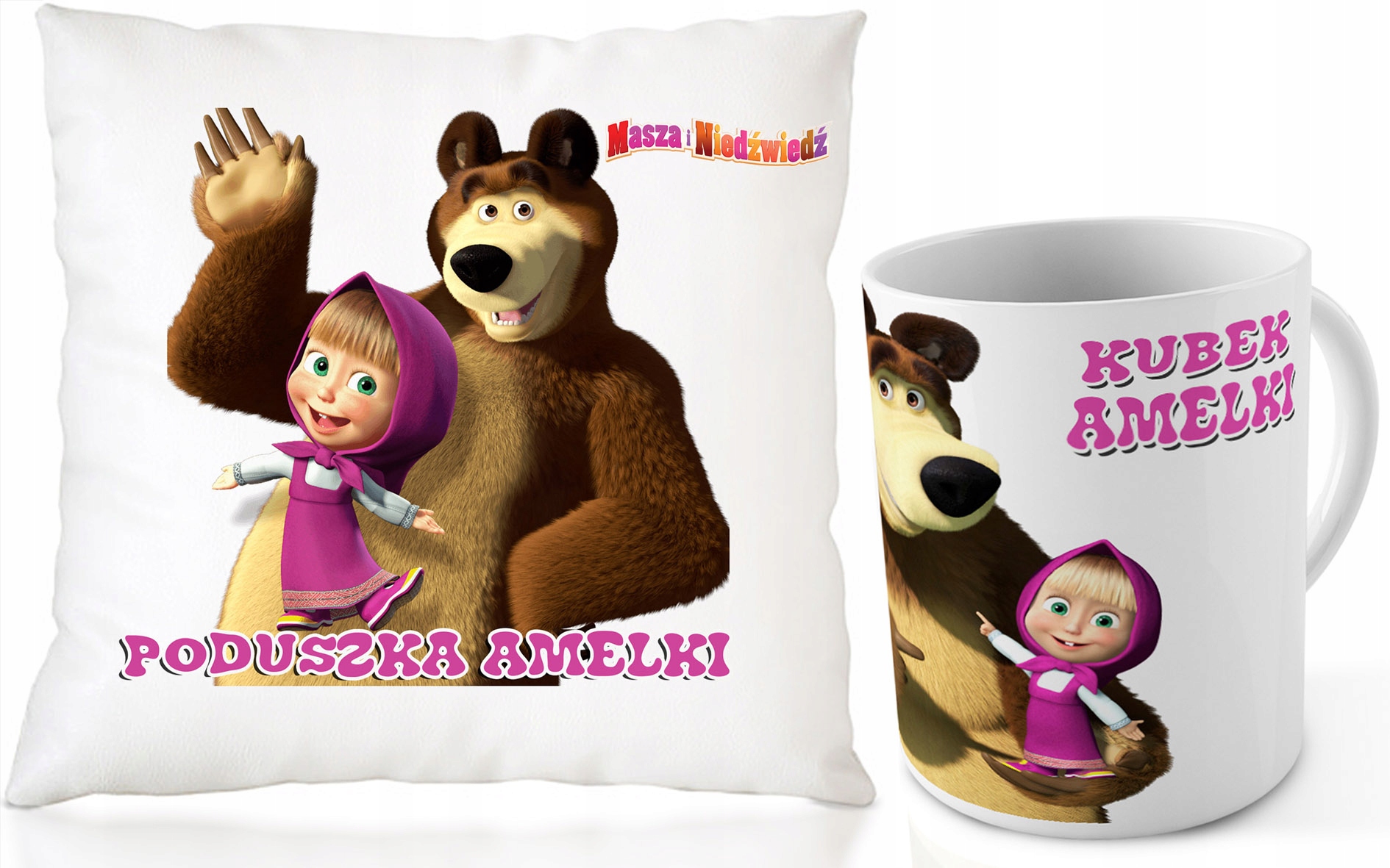 НАБОР КРУЖКА + ПОДУШКА МАСА І ВЕДМІДКА + ІМ'Я