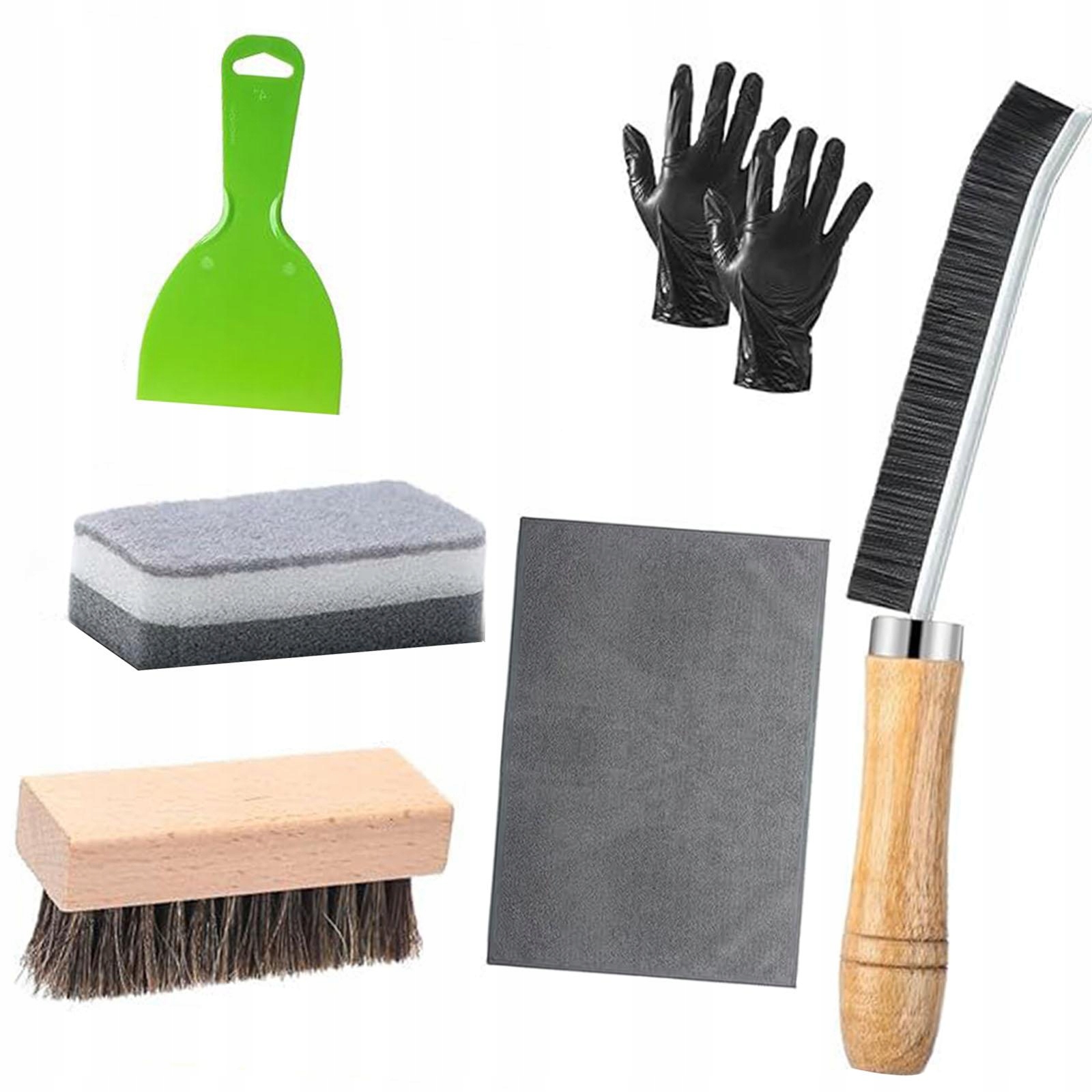 [Комплект по очистке надгробий] содержит 1 ткань из микрофибры, 1 кисть для очистки зазоров, 1 кисть для очистки, 2 несколько перчаток и 1 губку для очистки надгробий и 1 зеленый скребок PP