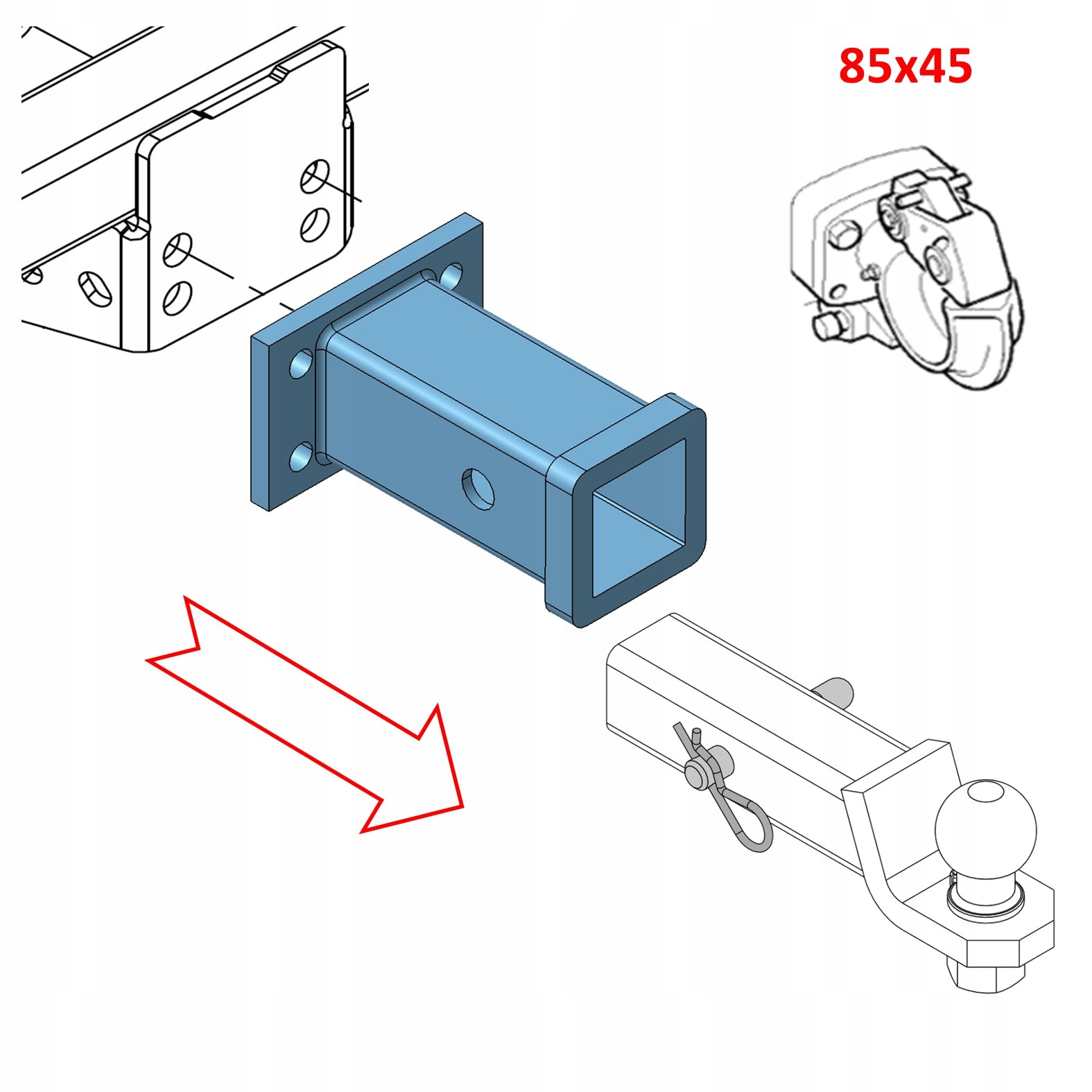 Шариковый адаптер фаркопа 85x45 мм -> США 2 дюйма (51x51 мм)