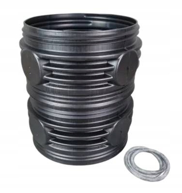 Цилиндрическая навинчиваемая надстройка для резервуаров дождевой воды, септиков, установок биологической очистки, жироотделителей и фильтров. Изготовлен из полиэтилена высокой плотности PEHD методом экструзии с раздувом пластика. Использование надстройки для бака или сепаратора позволяет разместить бак глубже, обеспечивая при этом сервисный доступ к устройству. Надстройка демонтируется и приспособлена под смотровые люки.