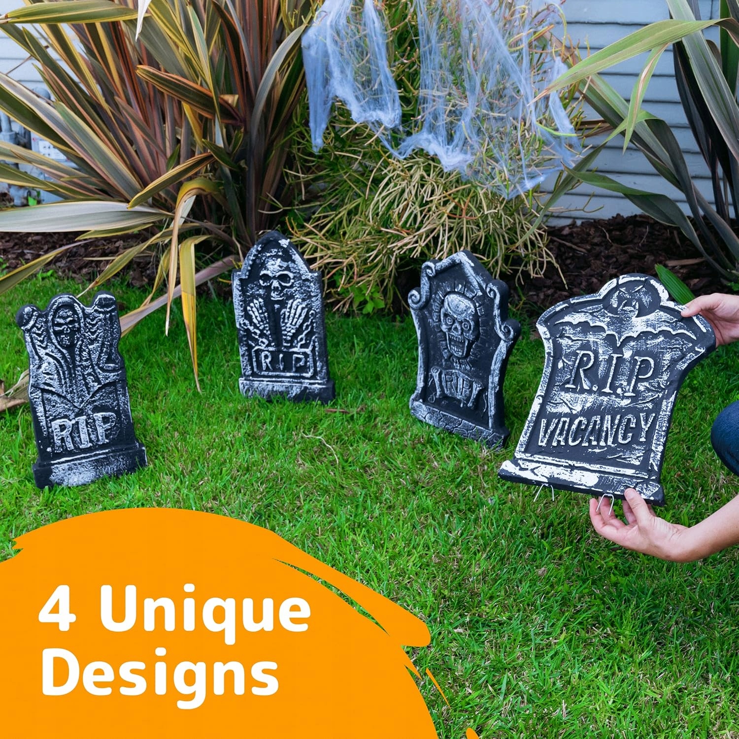 Набор Prextex из 4 украшений для Хэллоуина, надгробие из легкого пенопласта RIP, идеально подходящее для украшений Хэллоуина, для использования на открытом воздухе, в саду или в помещении, 43 см x 33 см