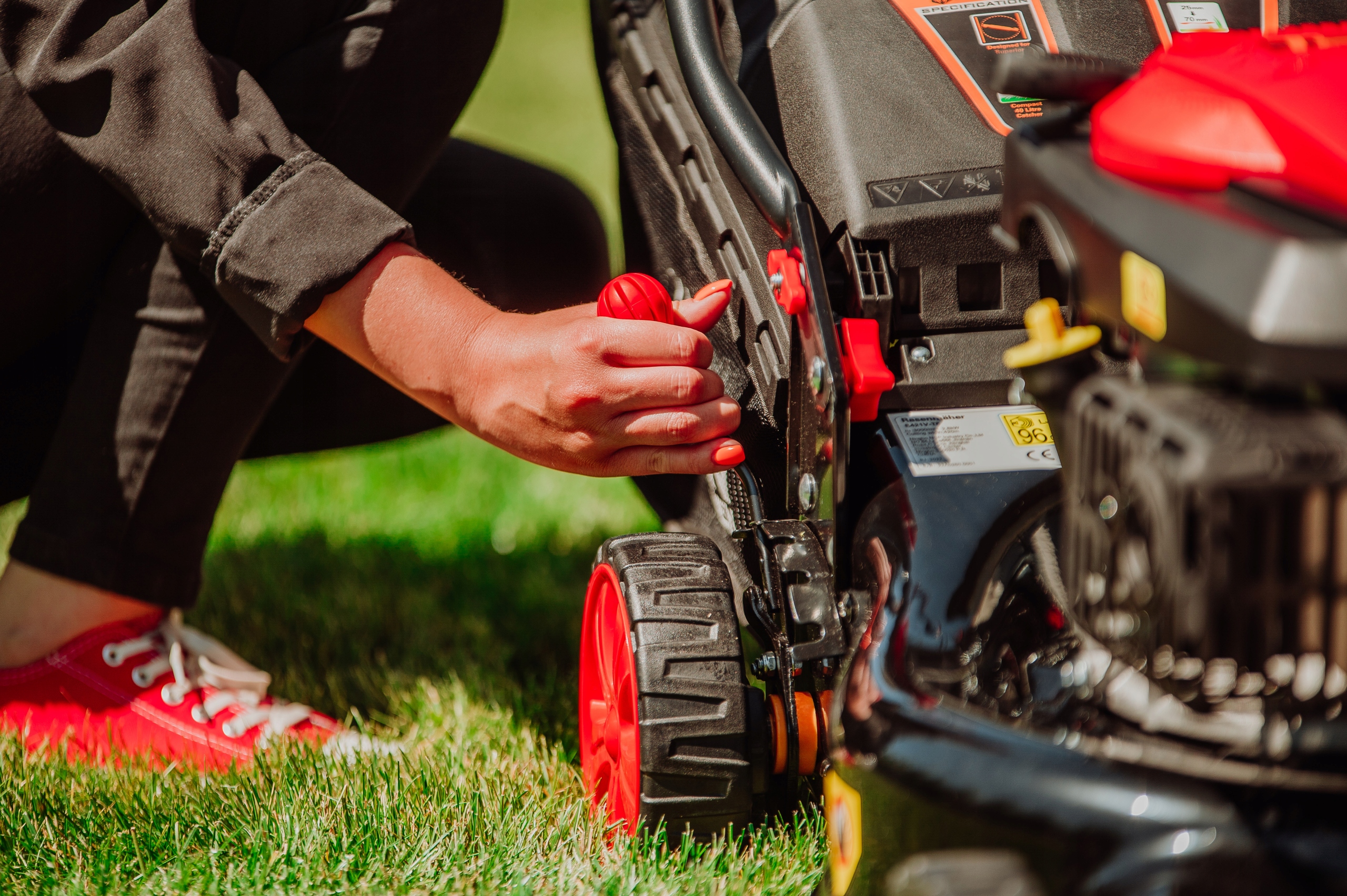 Это позволит нам настроить высоту ножа, соответствующую скашиваемой траве. Вы можете свободно менять высоту в зависимости от предпочтений на 5 уровнях, а сам механизм работает комфортно и надежно. Это одна из наиболее часто используемых функций бензиновых газонокосилок, на которую обращают внимание покупатели, когда каждую весну побеждают друг друга в конкурсах на самый красивый сад! Теперь вы можете занять первое место! В зависимости от ваших предпочтений вы можете выбрать вид поля для гольфа или нежную щетину, которая идеально подойдет для пледа и пикника в солнечном саду.
