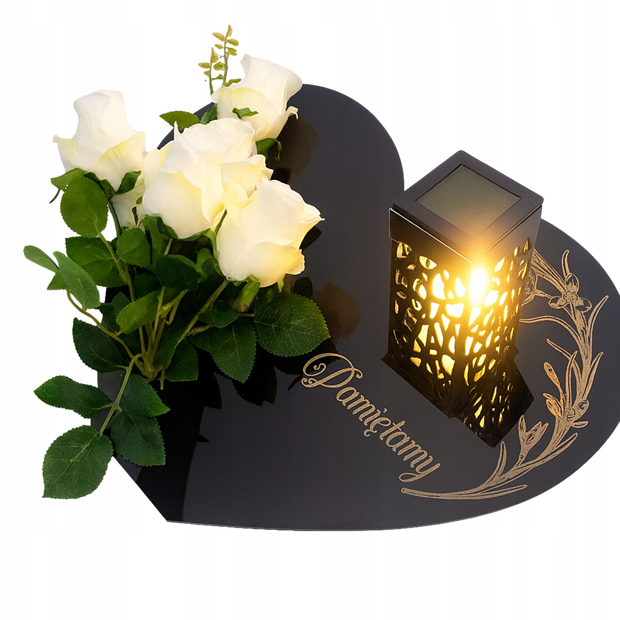Могильный букет с солнечной свечой, ЦВЕТОЧНАЯ КОМПОЗИЦИЯ, подставка в форме сердца