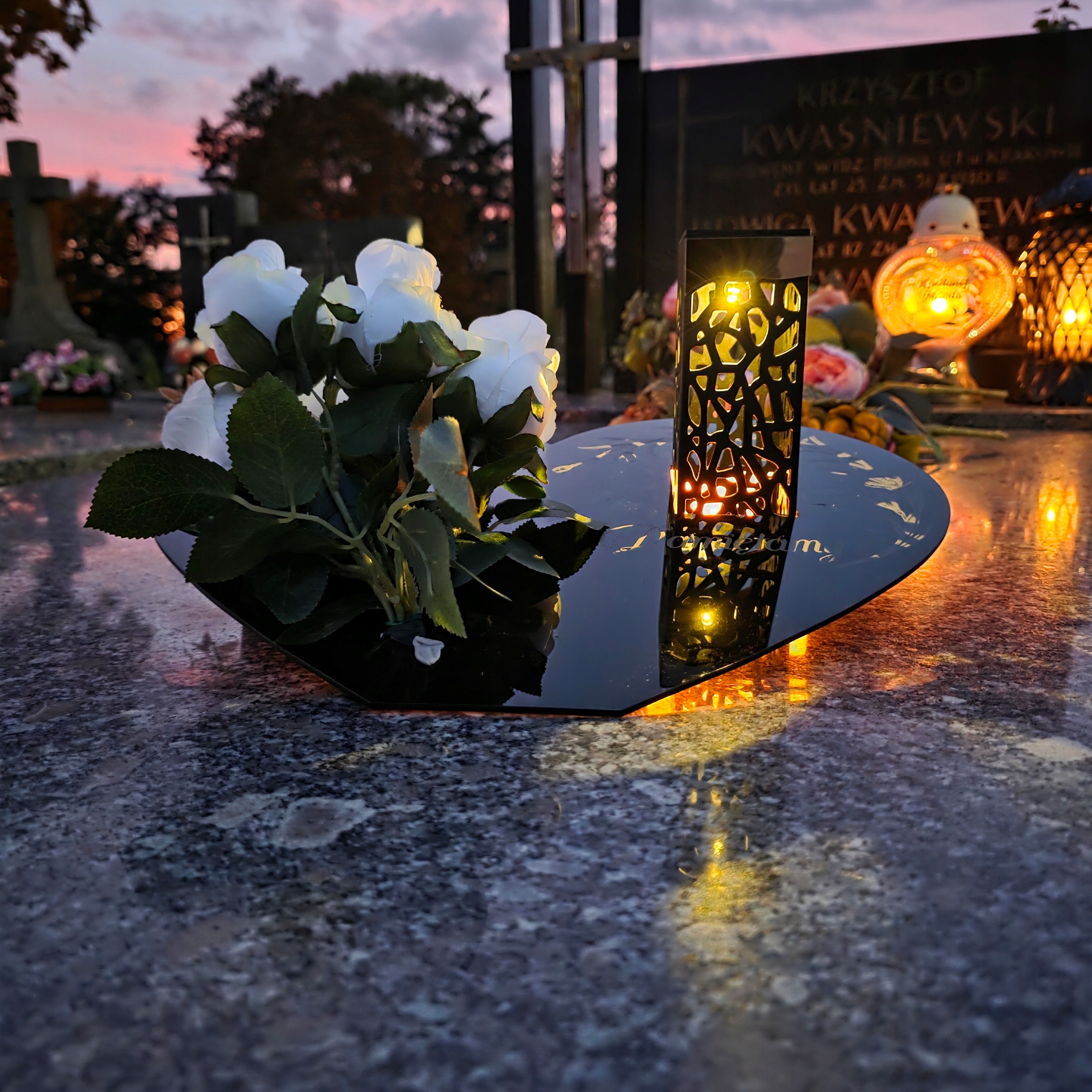 ✅ Элегантная подставка с декоративными деталями с граверем «Памяти» – wykonana с поликристаллическим акриловым стеклом