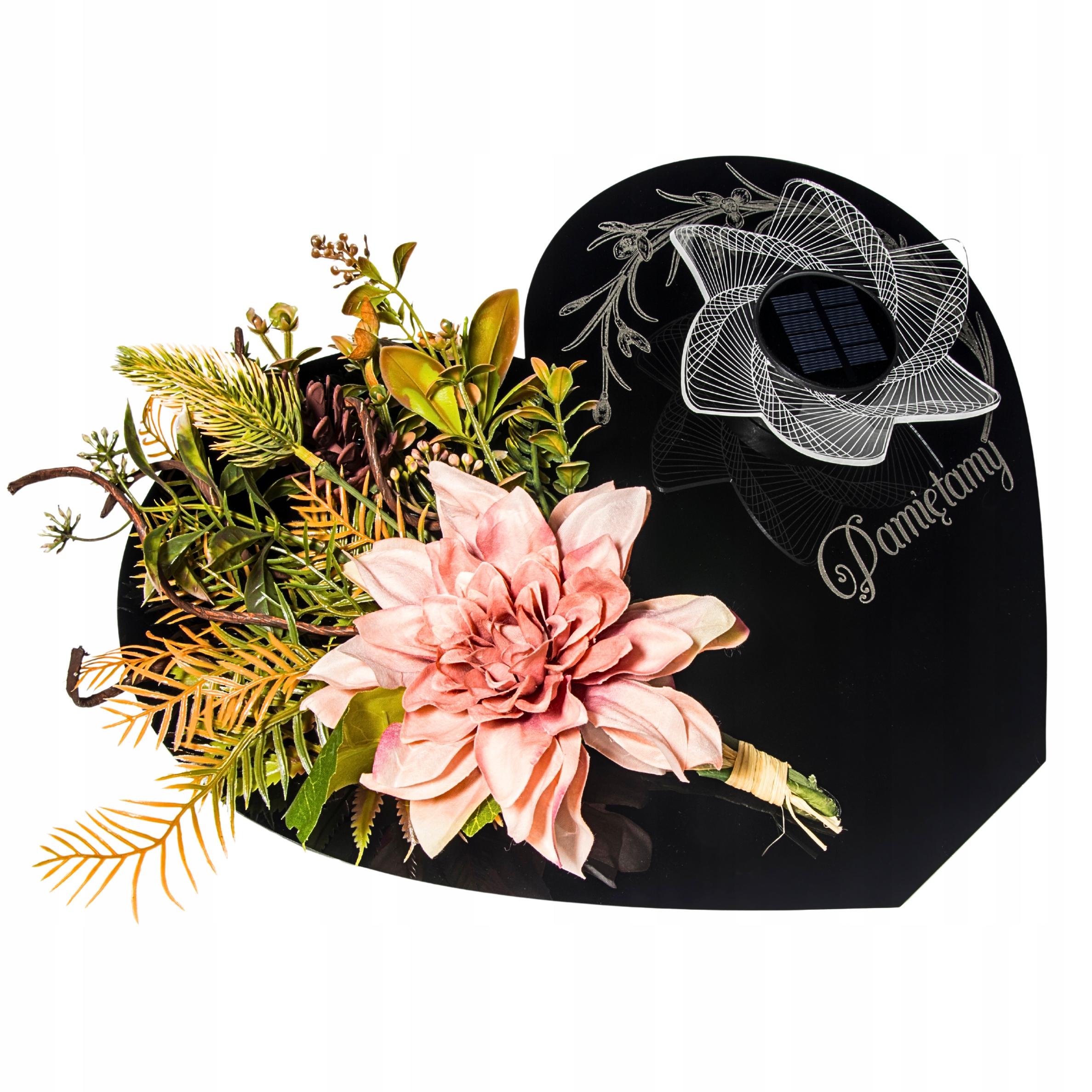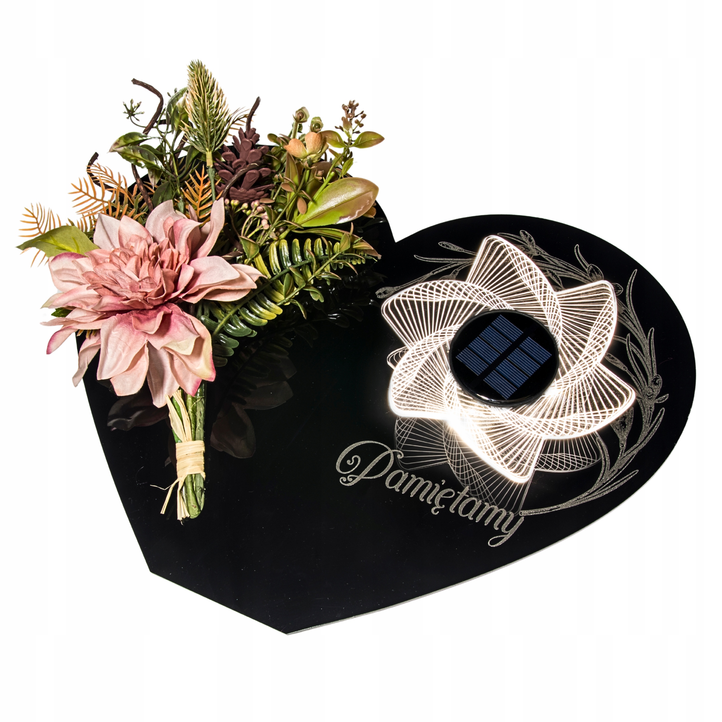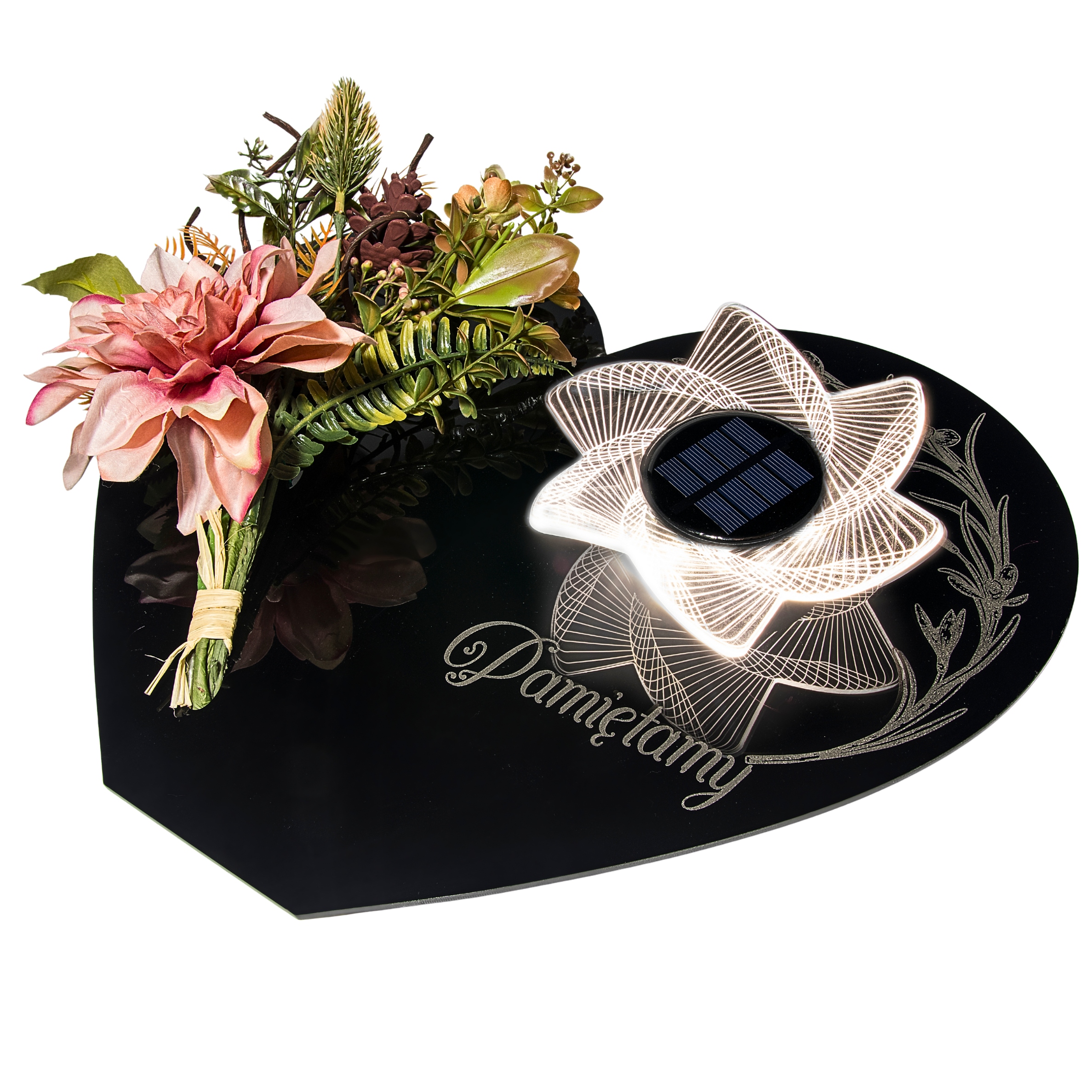 Могильный букет с солнечной свечой, ЦВЕТОЧНАЯ КОМПОЗИЦИЯ, подставка в форме сердца