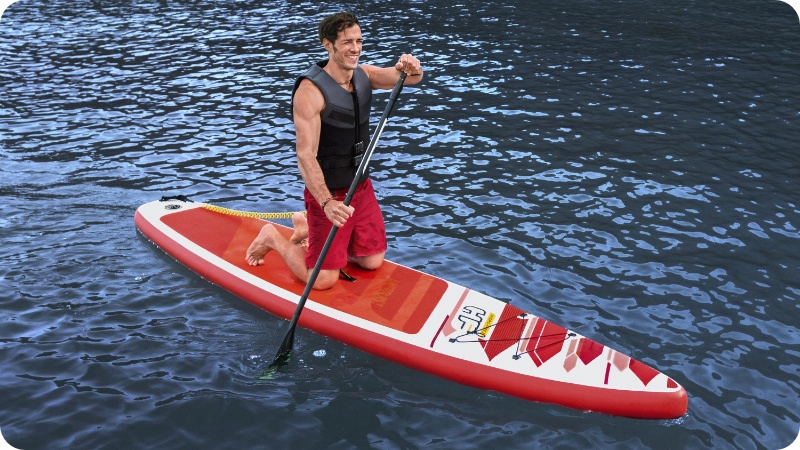 В этот отпуск выберите активный способ времяпрепровождения с надувной доской для скоростного плавания Bestway. Он изготовлен из материала Drop Stitch – тысячи нитей, образующих внутренние края материала, обеспечивают большую стабильность и долговечность. Противоскользящая поверхность придает уверенности и повышает устойчивость. Максимальная грузоподъемность доски — 120 кг.