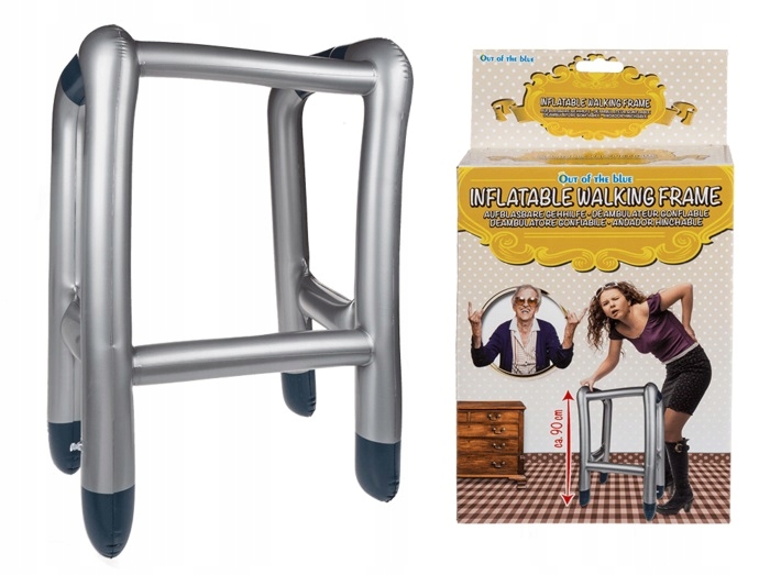 Забавная идея подарка имениннику, который вечно жалуется на то, что годы летят или ломаются кости – надувные ходунки/ходунки. В надутом состоянии его размеры 90 х 90 х 90 см. Его можно использовать как забавный гаджет для вечеринки, а также как полезный поручень, чтобы поддержать себя. Все упаковано в коробку с вешалкой.