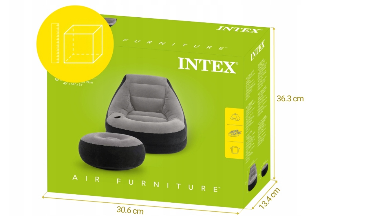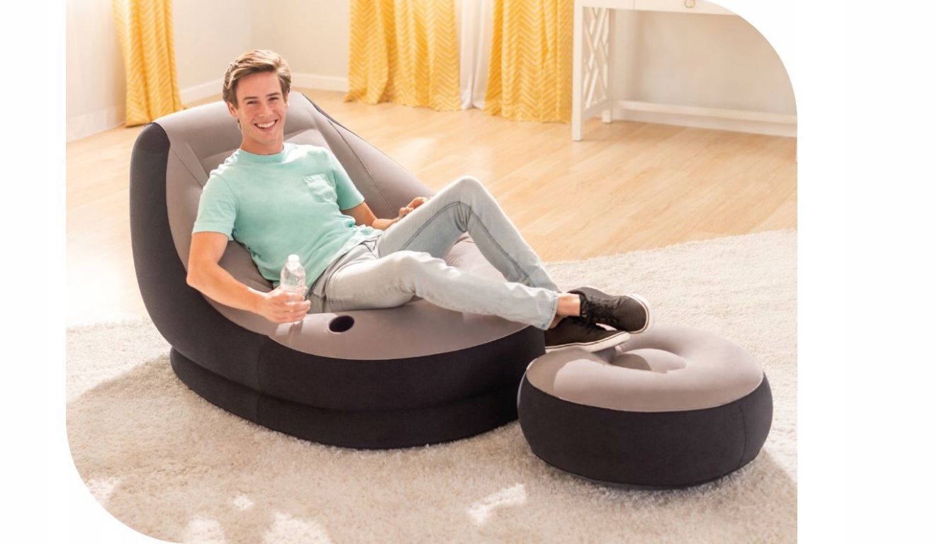 Надувное кресло с подставкой для ног от Intex! b> — идеальное решение для вашего дома. Он изготовлен из прочного и долговечного винилового материала.