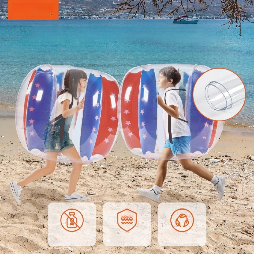Надувные мячи для сумо, изготовленные из прочного взрывобезопасного ПВХ толщиной 0,3 мм, обеспечат длительное и безопасное развлечение. Диаметром 115 см, предназначен для игроков ростом 110-160 см и весом 50-150 кг, особенно для детей старше 6 лет (рекомендуется присмотр взрослых).