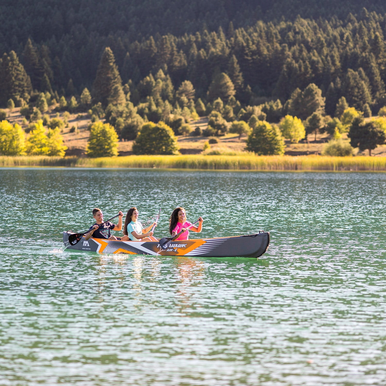 Томагавк сочетает в себе элементы надувной байдарки и классического каноэ. Сочетание эффективности, устойчивости и вместимости. Идеально подходит для любительского плавания, но его также можно успешно использовать на более длинных маршрутах. Томагавк ориентирован на планирование и Скорость.Характеризуется узким корпусом, который хорошо держит направление, в то же время позволяет быстро поворачивать, возвращаясь в устойчивое положение быстрее, чем большинство быстрых каяков.