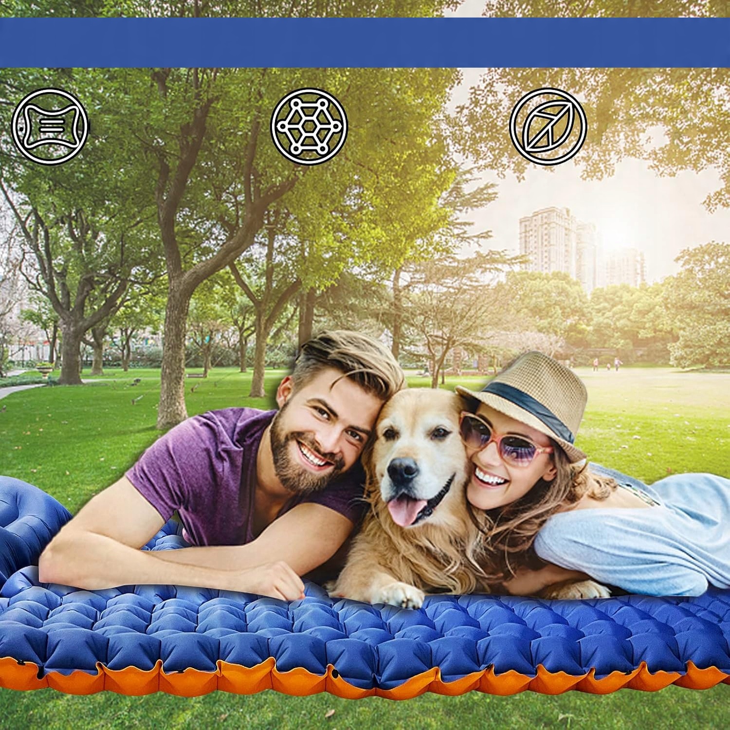 🔷 Прочный материал: Передняя часть кемпинговой площадки изготовлена из 40D. нейлон со слоем ТПУ, который является прочным, мягким, бесшумным и водонепроницаемым. Просто протрите полотенцем для удобства ухода. Кроме того, этот походный надувной матрас обеспечивает отличную поддержку: в полностью надутом состоянии он может выдерживать вес до 200 кг.