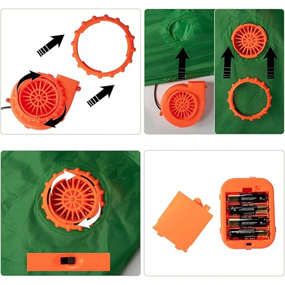 Мгновенное надувание и регулируемый вентилятор: полностью надувается за 1–2 минуты! Съемный вентилятор и аккумуляторный блок с возможностью подзарядки через USB (совместим с блоками питания). Требуется 4 батарейки типа АА (не входят в комплект).