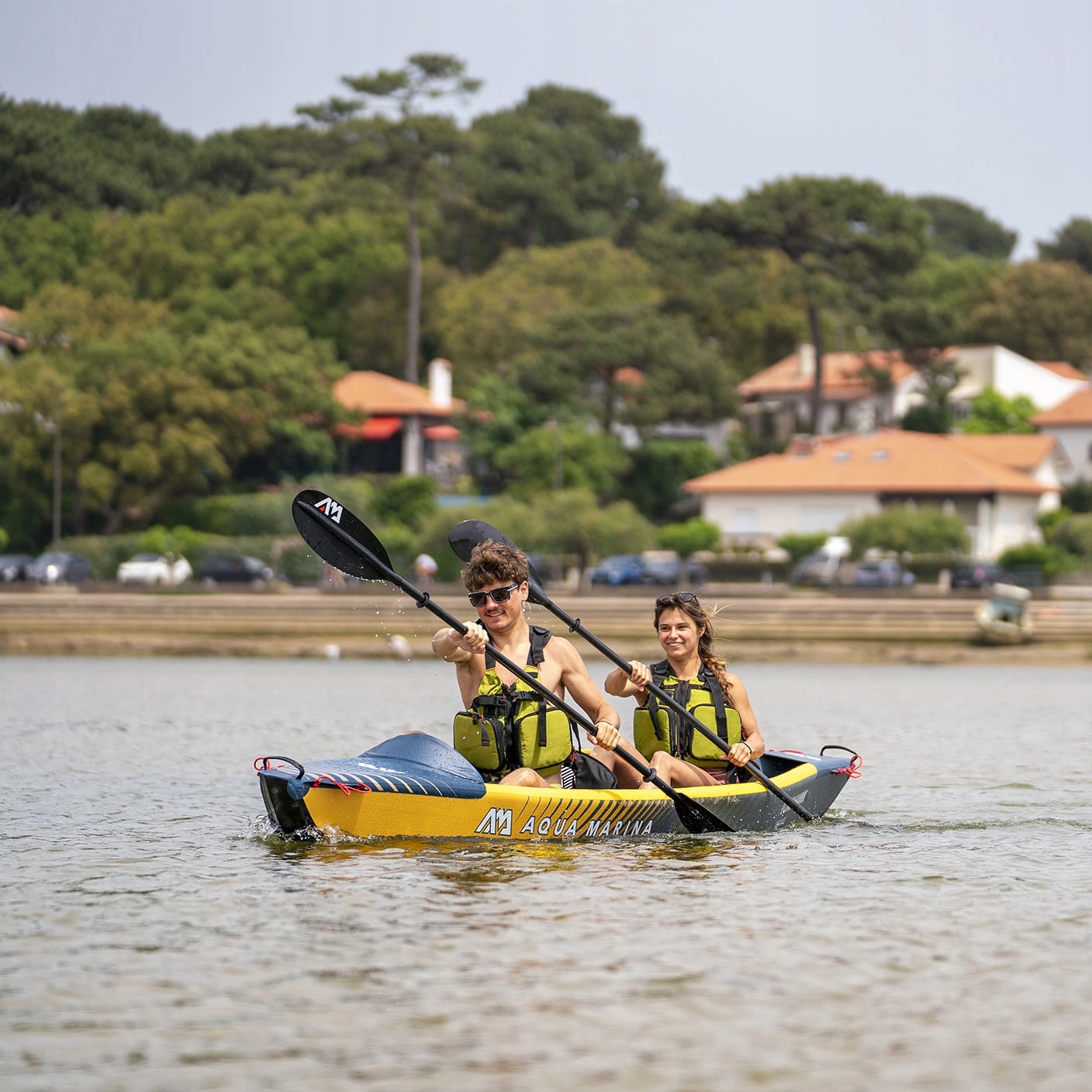Серия пневматических каяков tomahawk бренд Aqua Marina характеризуется полной производительности в технологии Drop-Stitch Lite . Это означает, что как пол, так и боковые стороны сделаны из тысяч мелких полиэфирных волокон, которые после надувания до соответствующего давления образуют жесткую и устойчивую структуру. Благодаря этому каяк имеет аналогичные плавные параметры с «жесткими» традиционными каяками, и в то же время примерно на 40% легче их . Кроме того, после слива воздуха и упаковки в сумке он поместится в каждом багажнике или на заднем диване автомобиля. Air-K 440 широко используется. Вы можете плавать по нему как в спокойных водах, так и в быстрых реках. Это чрезвычайно быстрый каяк для продвинутых и промежуточных гребцов. Заполненный в форме «V» накачированных шариков «V» на корме и клюва и два легко съемных finy Slide-in , сделайте его моделью, которая необычно сочетает в себе скорость, маневрирование и стабильность. Чтобы повысить безопасность во время отдаленных поездок, каяк изготовлен из трех отдельных камер. Тем не менее, нет весла, которые вы можете купить на других наших аукционах. два складных, съемные сиденья с высокими спинами, губчатая подушка и много карманов для ручного багажа позаботятся о достаточном комфорте и положении. Каяк имеет транспортные ручки, клапан, который облегчает дренаж воды от корпуса и регулируемый подход