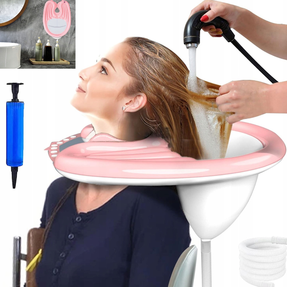 Надувная раковина для мытья волос облегчает мытье головы людям, прикованным к постели или с ограниченной подвижностью, позволяя им легко и удобно мыть голову в постели. Его также могут использовать здоровые люди, которые хотят использовать домашний спа-салон для волос.