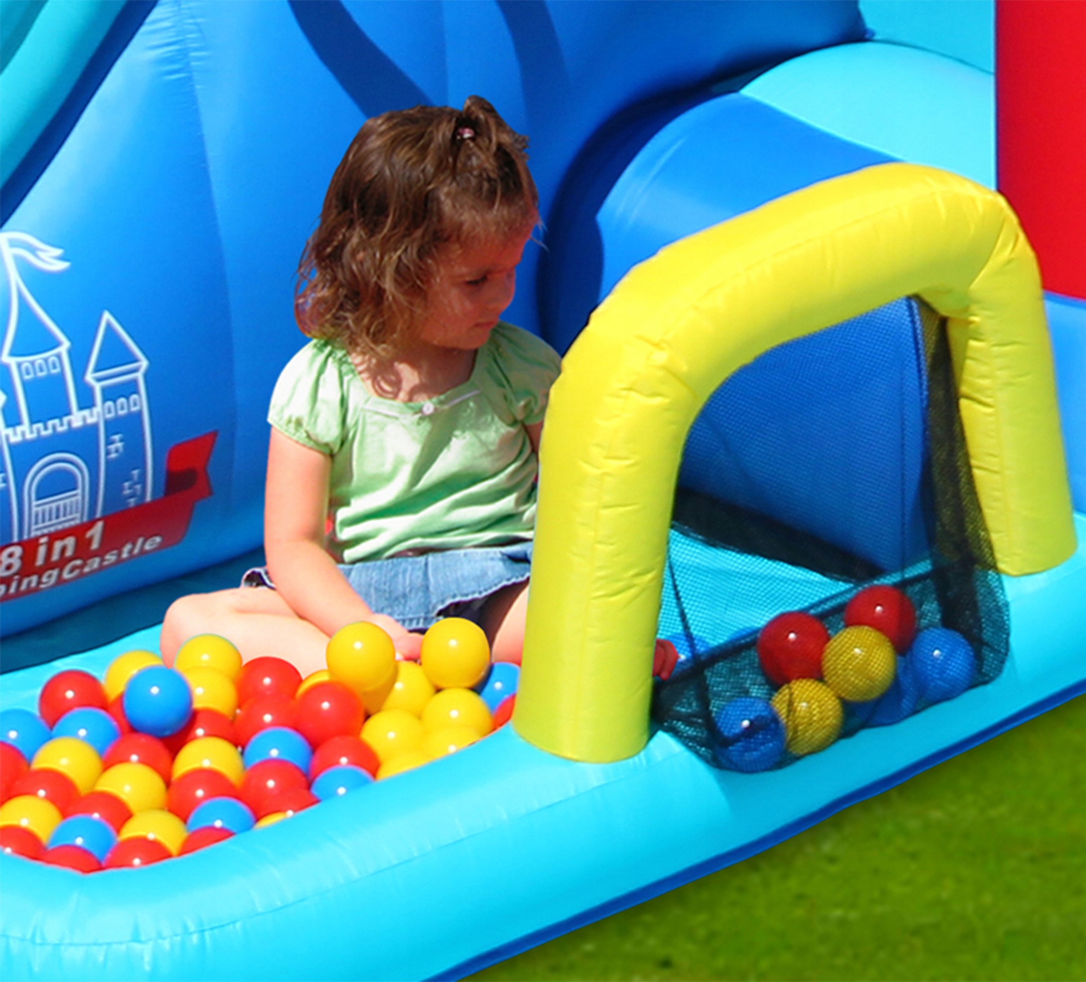 Размер надувной игровой площадки подобран таким образом, чтобы ее можно было легко собрать в саду или на участке. Идеально подходит для особых мероприятий, таких как детские дни рождения, или для повседневного использования.