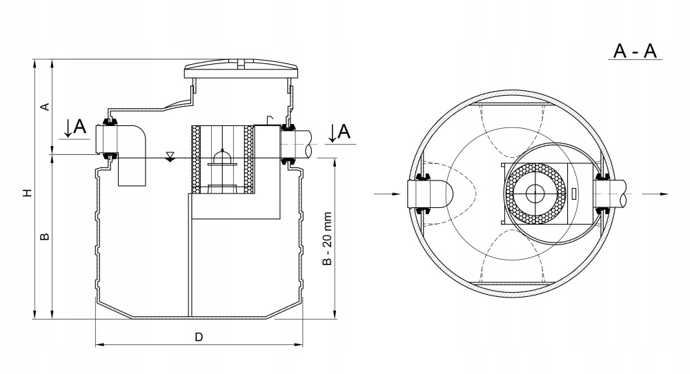 - диаметр входного/выходного отверстия для ПВХ DN 160, DN 200 согласно инструкции Заказчика, согласовывайте перед покупкой